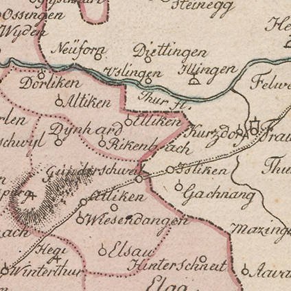 Ausschnitt aus der «Wandkarte des Cantons Zürich, Nordost-Blatt, Heinrich Keller 1833»